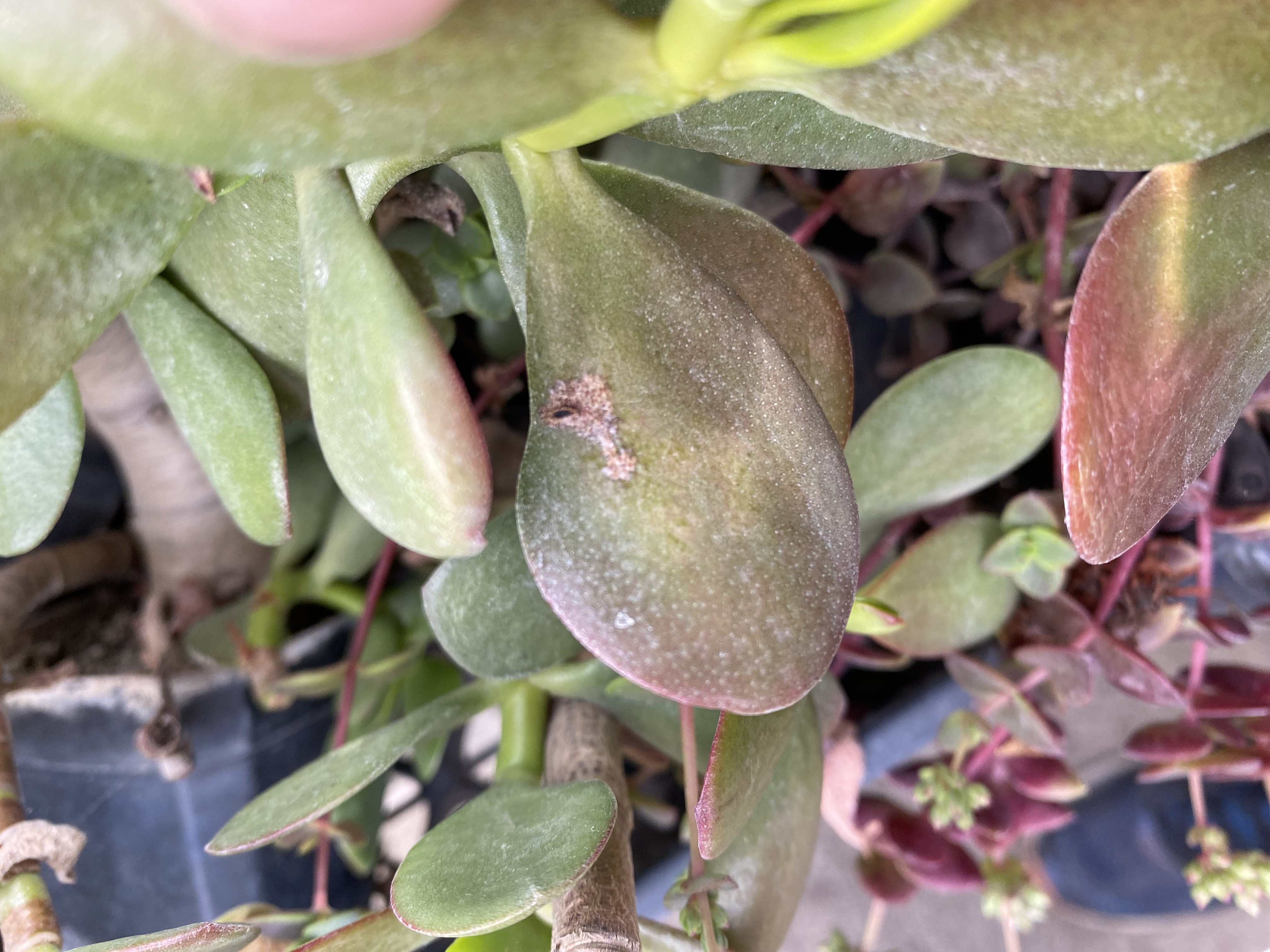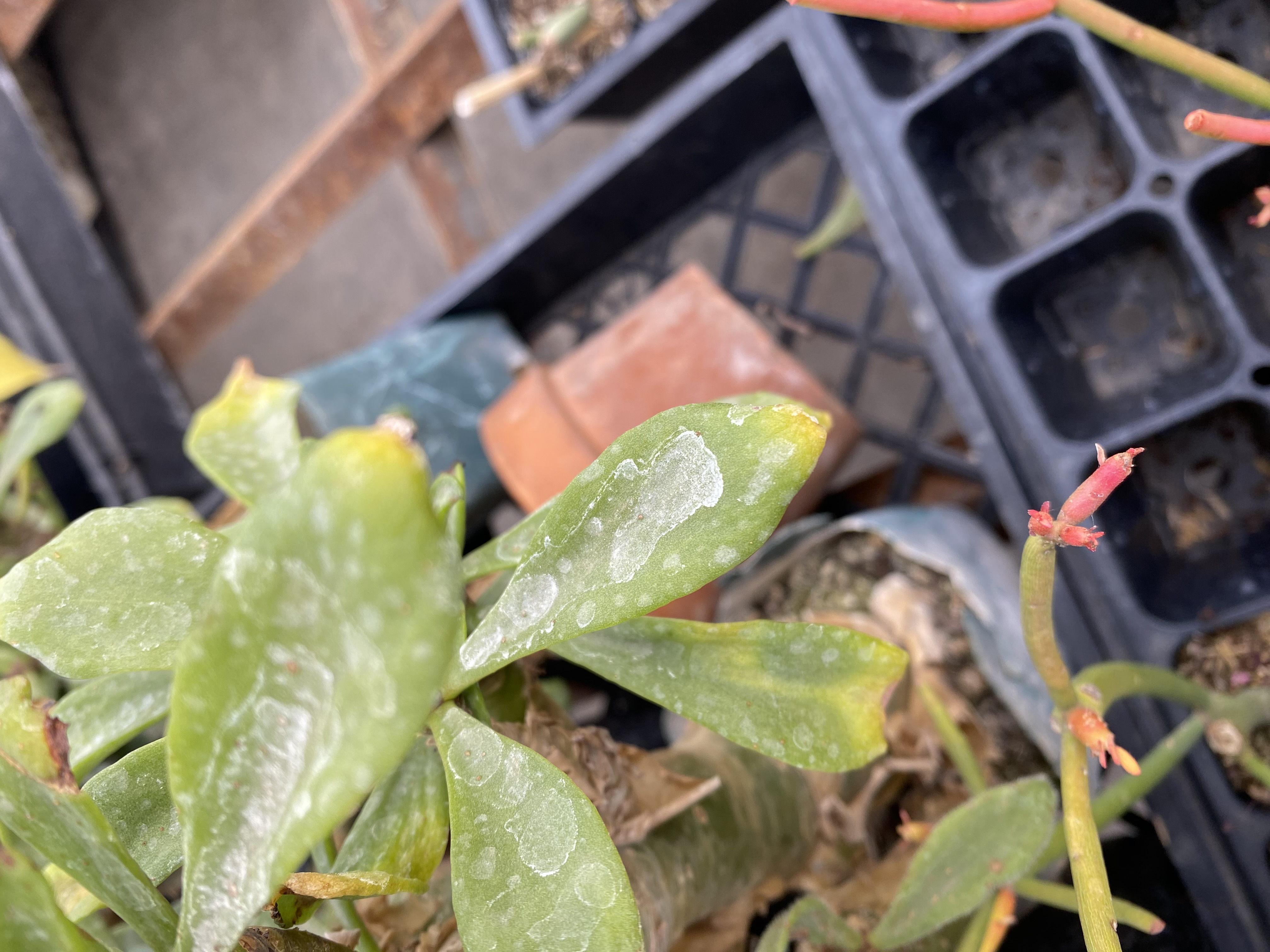 Please note, hard water stains can appear like powdery mildew. Note the Tylecodon below.